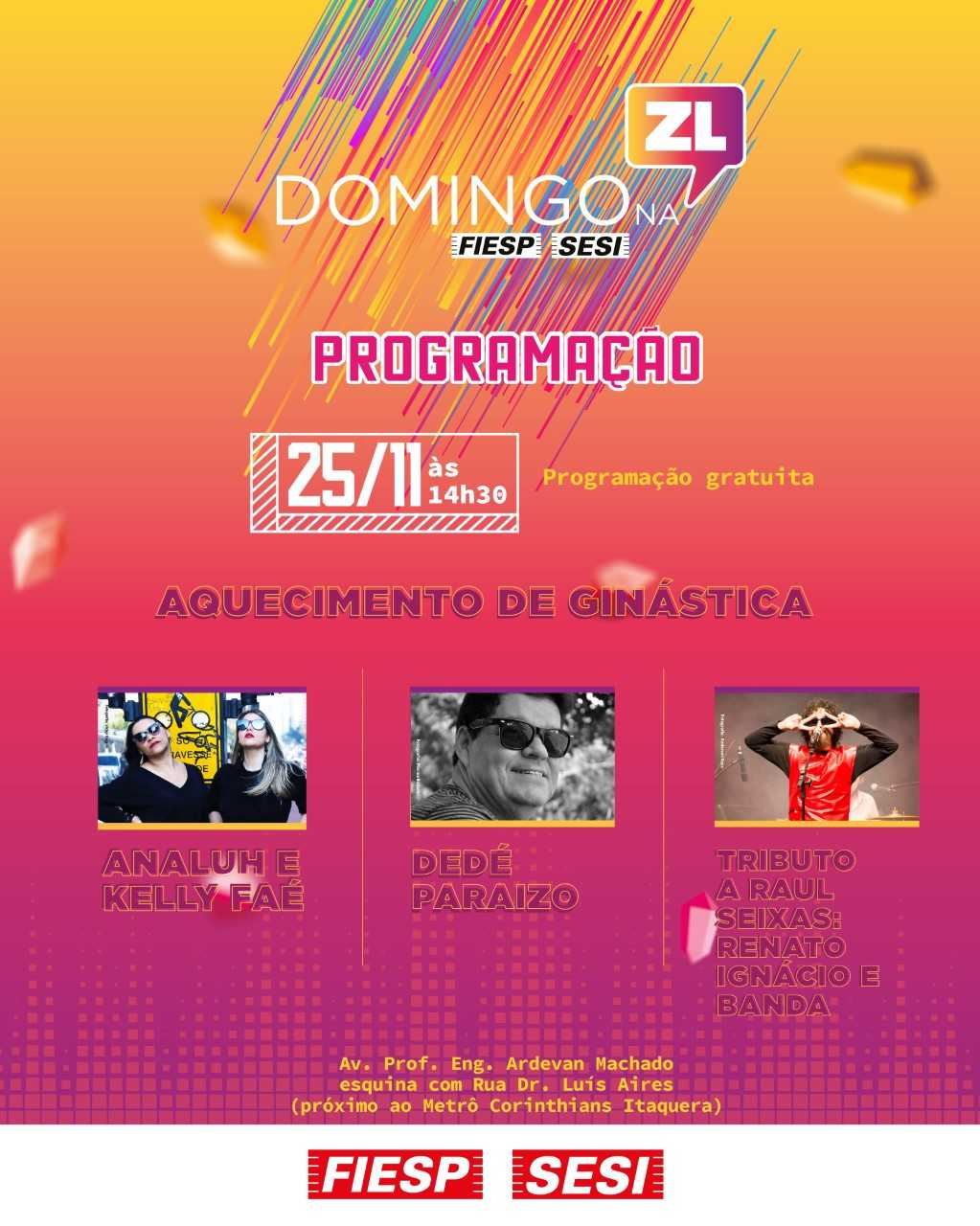 No próximo domingo, 25/11 às 14h30, o projeto Domingo na ZL contará com a presença de Renato e Ignácio e Banda em tributo a Raul Seixas. O show homenageia cantor “maluco beleza” que marcou toda uma geração.